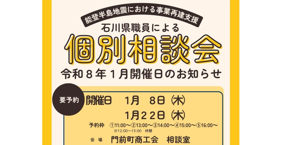 石川県職員による個別相談会(令和8年1月開催分)