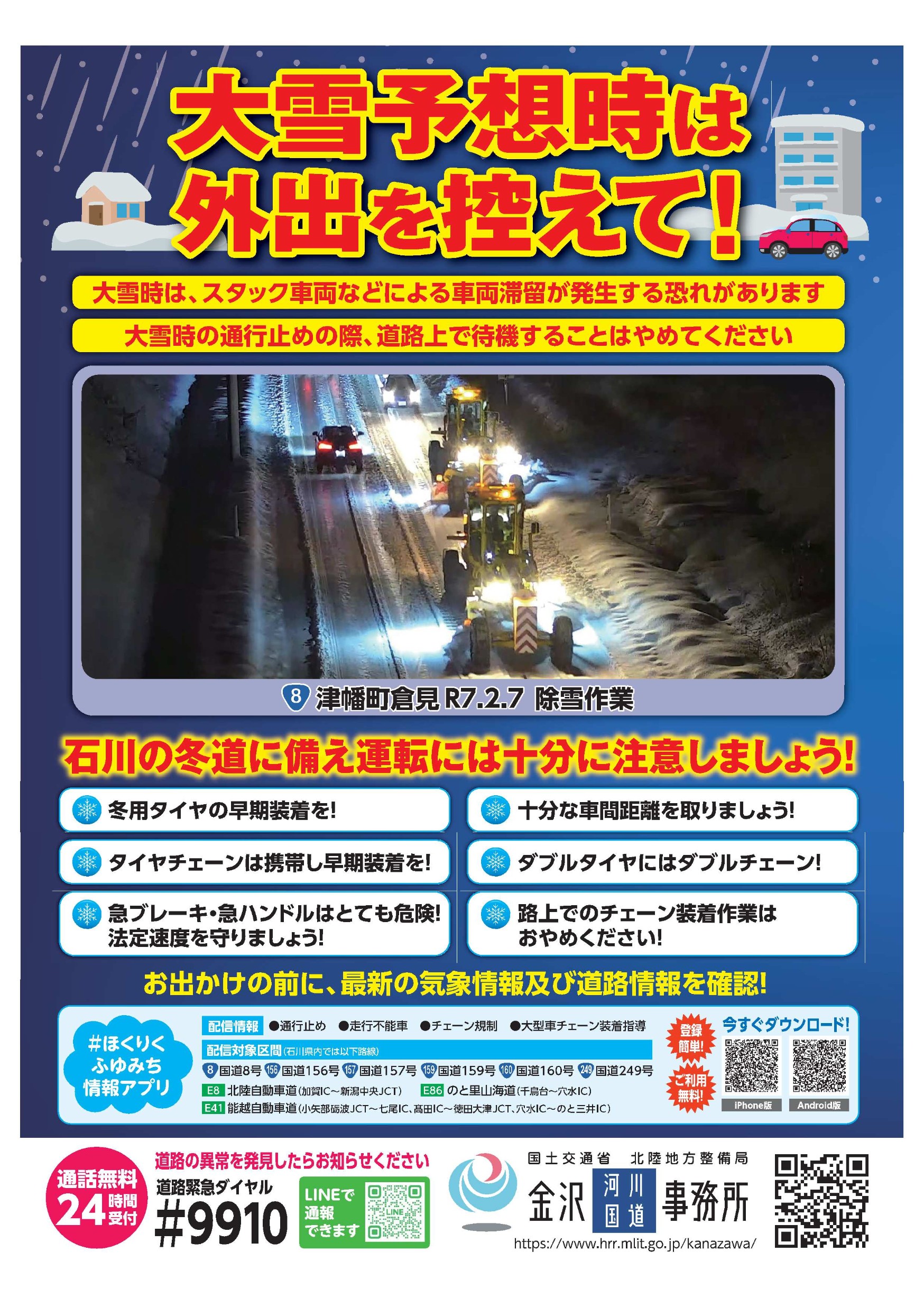 大雪時は、スタック車両などによる車両滞留が発生する恐れがあります。