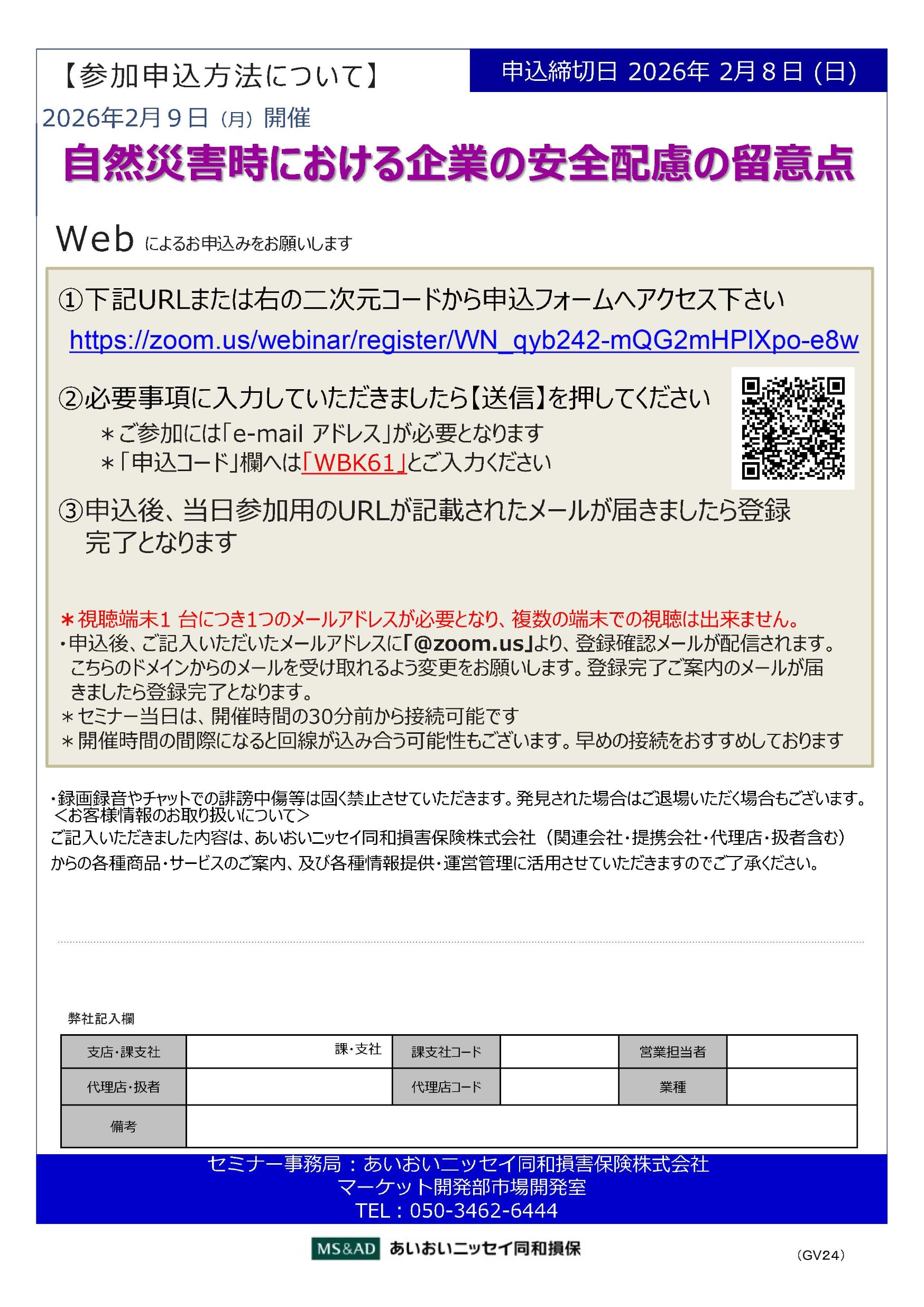 労務リスク対策セミナー 自然災害時における企業の安全配慮の留意点~『人をまもり、事業をつなぐ』弁護士が語る労務・法務の視点からのBCP~ が開催されます