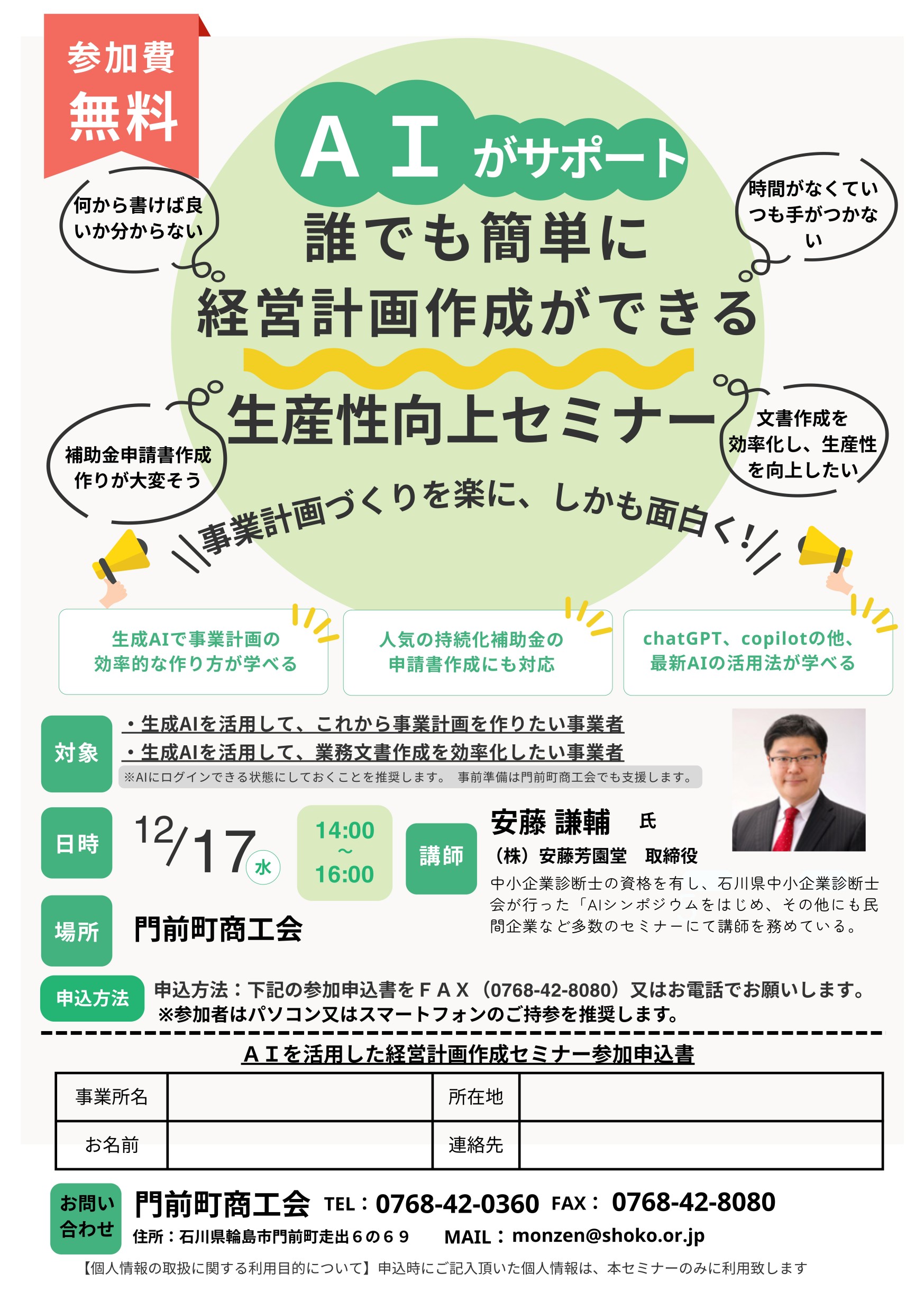 AIを活用して楽に作成しよう!経営計画作成セミナー開催のお知らせ